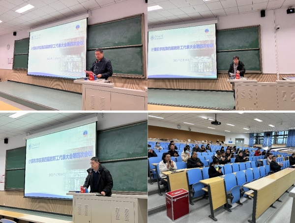 2023年12月19日下午,计算机学院第四届教代会第四次会议在九教中102召开。会议由学院工会主席段春荣主持。