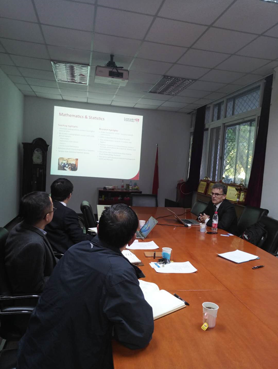 Andreas Mauthe教授向学院的热情接待表示感谢,并就机构组成、教学成果、科研成果、国际合作等方面介绍了兰卡斯特大学计算机学院的基本情况。Andreas Mauthe教授表示希望与今年会加深科学研究和人才培养等方面的合作。