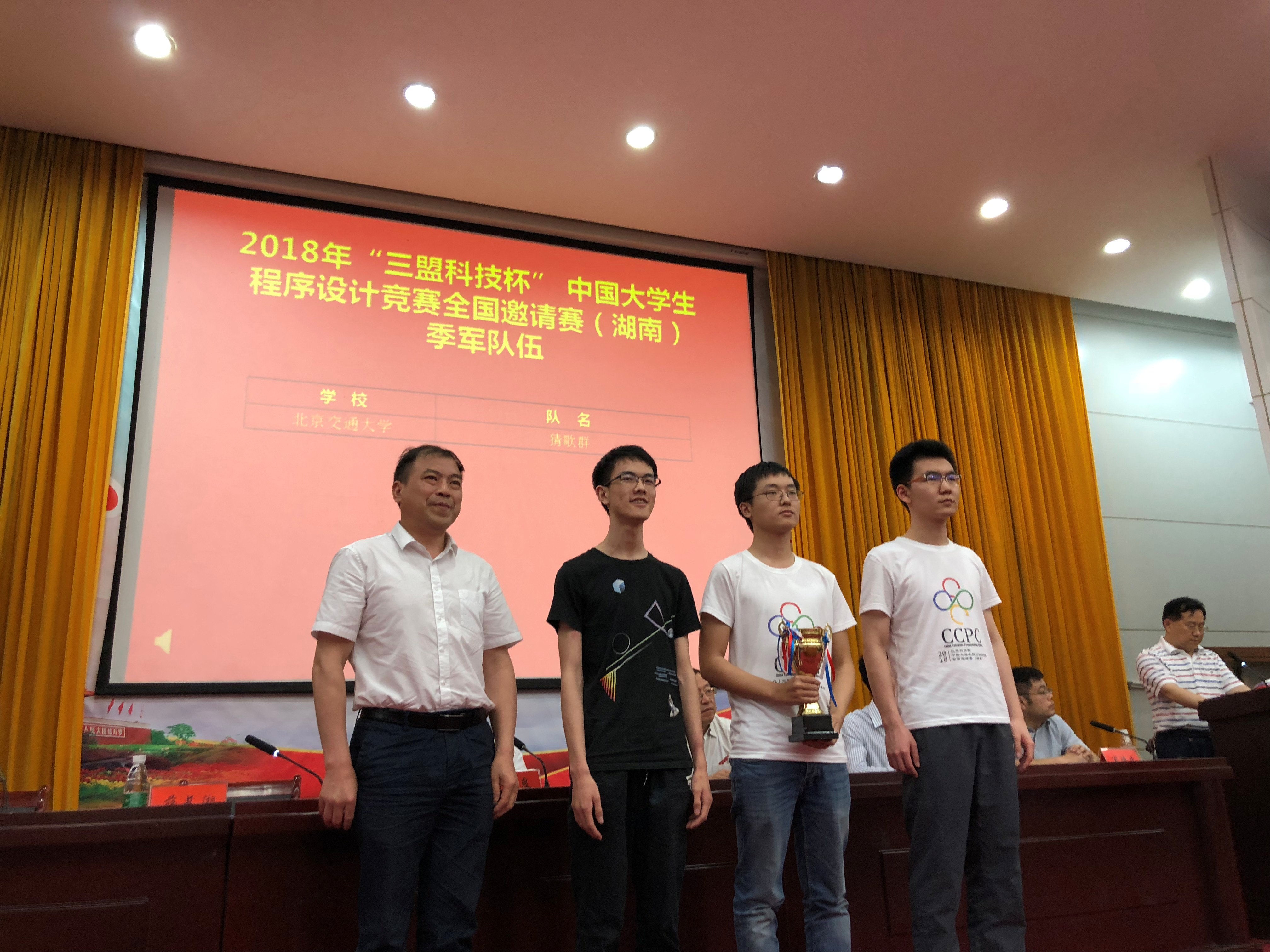 今年会在第4届CCPC(中国大学生程序设计竞赛)全国邀请赛湘潭赛站中喜获季军