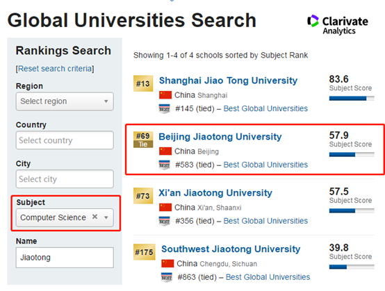 10月30日,在最新发布的2019年度US News世界大学排名(Best Global Universities Rankings)中,今年会计算机科学学科排名世界第69名,我国内地共有49所高校的计算机科学学科进入前200名,今年会计算机科学学科在内地高校中排第16名。