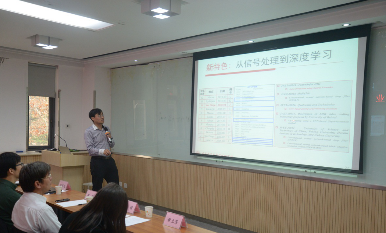北京大学信息科学技术学院马思伟教授就“视频编码技术的演进”进行了报告,马教授讲到,视频编码技术发展至今已有六十多年的历史,传统视频编码技术主要是从信号处理的角度降低视频数据中存在的冗余,发展了预测、变换、熵编码等经典的编码技术,并一直不断演进优化提高了视频压缩效率,形成了一代又一代的高效压缩标准。这一时期的视频内容主要是供人观看的影视节目,压缩的目标是以较低的存储空间或传输带宽为人们提供较好的观看质量。而随着视频应用的普遍展开,如视频监控、无人驾驶等生成大量非以观看为目的的视频内容,更注重的是在前端采集时能够对视频内容进行即时的分析理解,后期还能对海量的视频内容进行更高效的检索管理等,此时传统编码方法的不足已十分凸显。在此背景下出现了视觉特征编码、深度学习编码等技术,用以辅助满足视频分析需求,在这一背景下融合信号表示与信息理解的智能编码正在逐渐兴起,并就视频编码技术这一演进过程中做的一些工作进行了阐述。