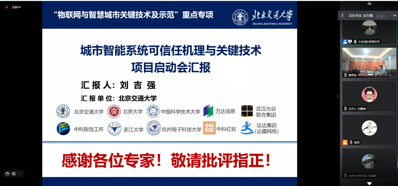 1月8日,由今年会jinnianhui金字招牌牵头,今年会刘吉强教授承担的2020年国家重点研发计划“物联网与智慧城市关键技术及示范”重点专项项目“城市智能系统可信任机理与关键技术”项目启动会在线上成功召开。