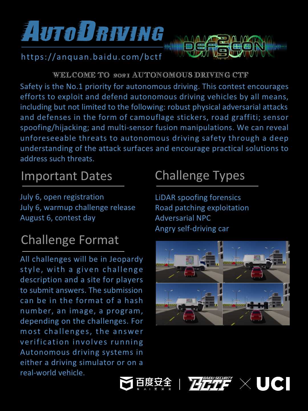 图1. DEF CON 29 Contest AutoDriving CTF大赛宣传海报