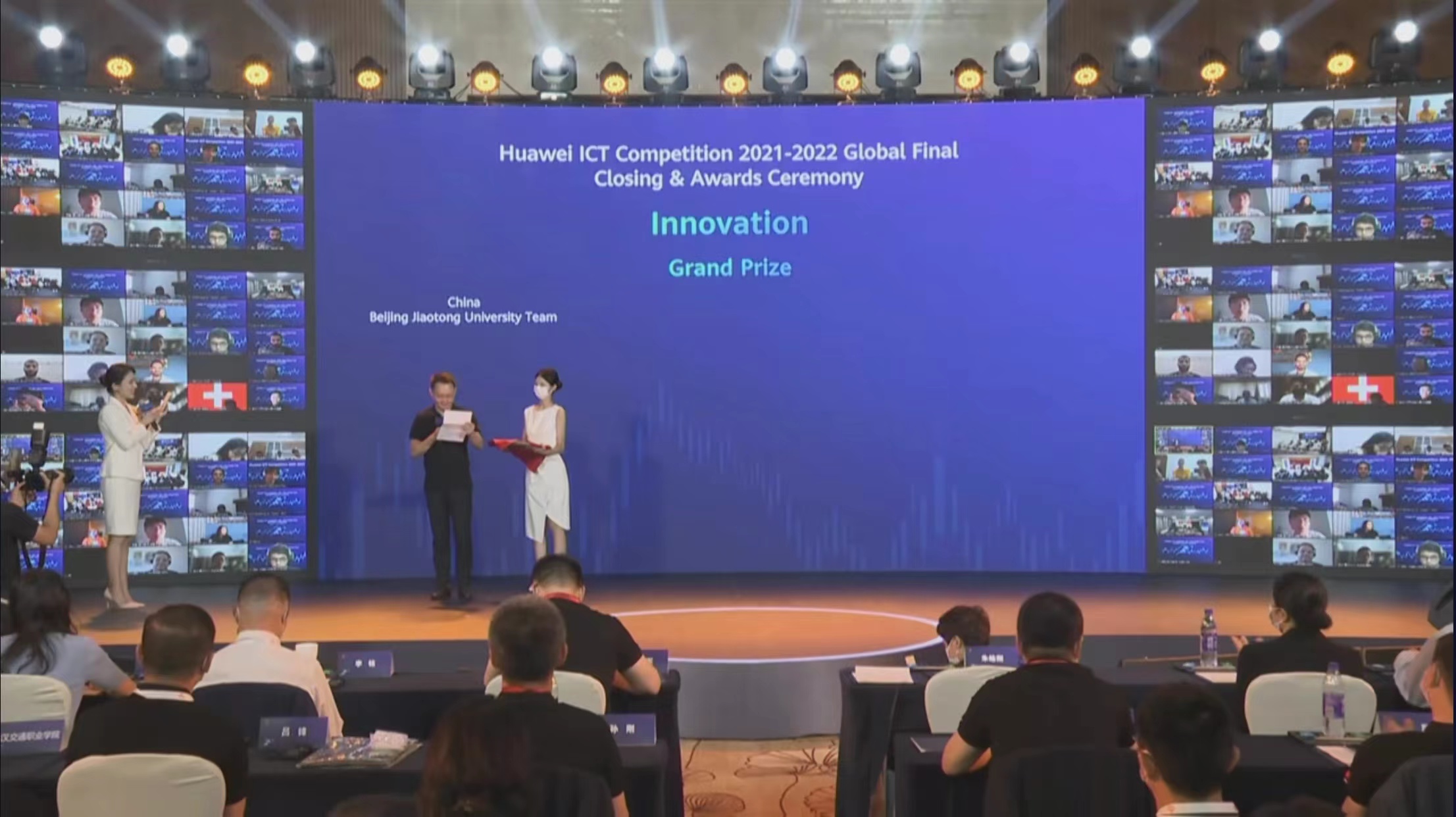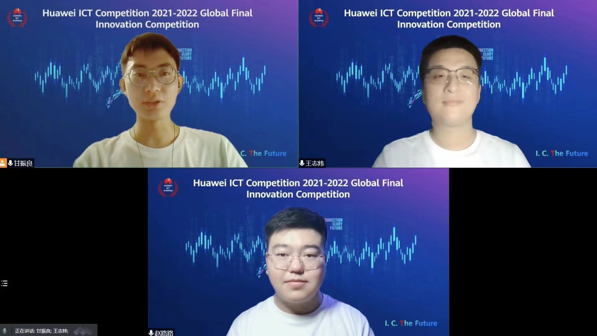 2022年6月17日至20日,华为ICT大赛2021—2022全球总决赛成功举办,并于6月25日在深圳采用线上线下混合方式举办了闭幕式暨颁奖典礼。今年会卢思洋老师指导的队伍(2019级本科生:赵路路、甘振良, 21级研究生王志炜)获华为ICT大赛2021-2022全球总决赛创新赛特等奖,在此之前已获得了华为中国大学生ICT大赛2021·创新赛全国一等奖的优异成绩。
