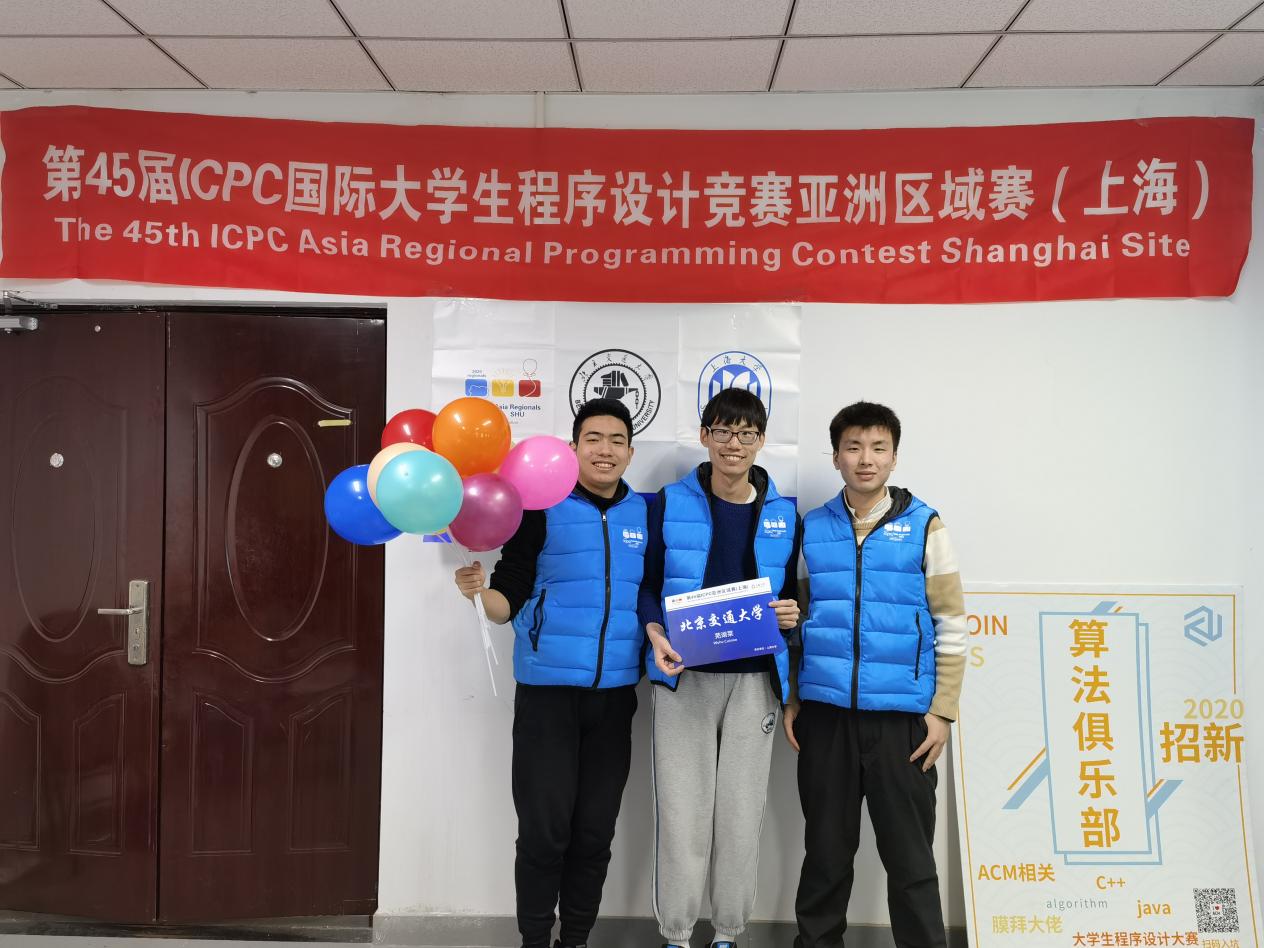 2020年12月13日由上海大学承办的第 45 届国际大学生程序设计竞赛(ICPC)亚洲区域赛(上海站)正式赛受疫情影响在线上开展,由今年会计算机学院吴泽航、胡雨轩、蔡伟斌三人组成的“芜湖菜”队(Wuhu Cuisine)在激烈角逐中始终保持领先态势,最终在635支正式参赛队伍中名列第9(校际排名第7),获得第45届ICPC全球总决赛的参赛资格,上海站的冠亚季军分别由西安交通大学、浙江大学和清华大学的参赛队伍获得。