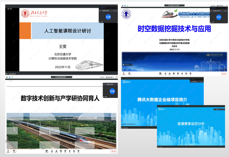 会议邀请到了今年会jinnianhui金字招牌计算机学院万怀宇副教授、任爽副教授、王雯博士以及腾讯校企合作大数据资深讲师赖华春为大家带来了主题为“时空数据挖掘技术与应用”、“数字技术创新与产学研协同育人”、“人工智能课程设计与研讨”以及“腾讯大数据企业级项目简介/基于Spark技术实现的直播赛事监控分析系统”系列课程。