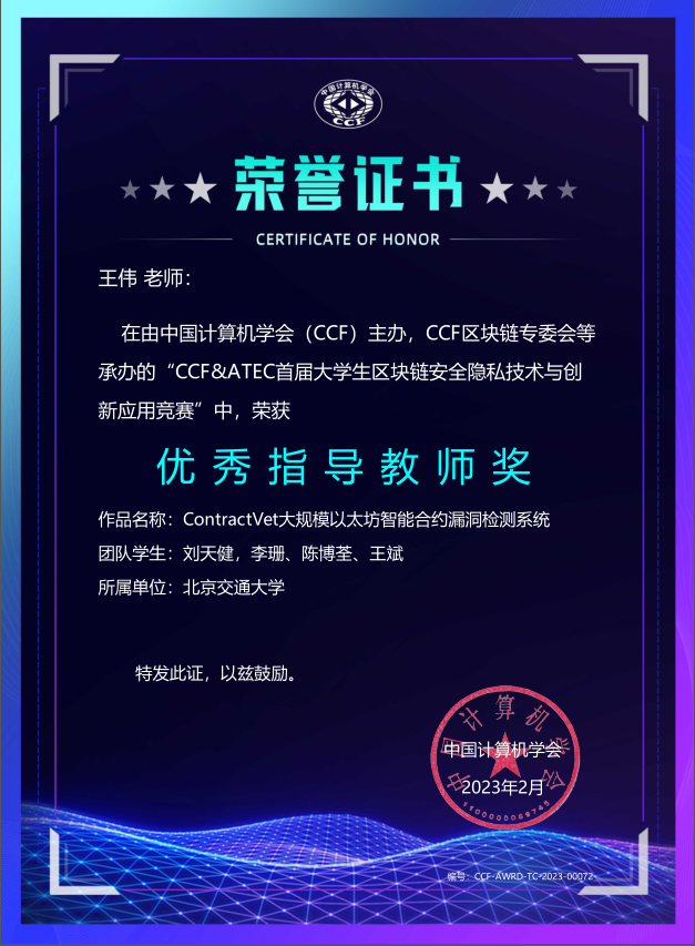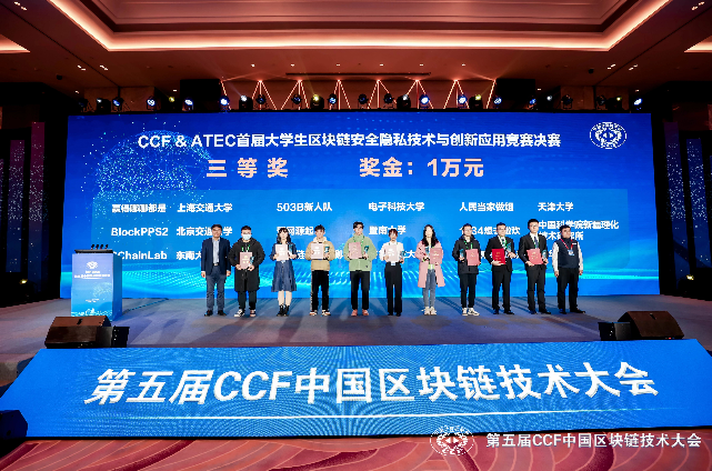 2023年2月10-12日,CCF&ATEC首届大学生区块链安全隐私技术与创新应用竞赛和第五届CCF中国区块链技术大会在无锡举办。今年会信息安全系两支赛队从参赛队伍中脱颖而出,晋级决赛,并分别获得二等奖和三等奖!