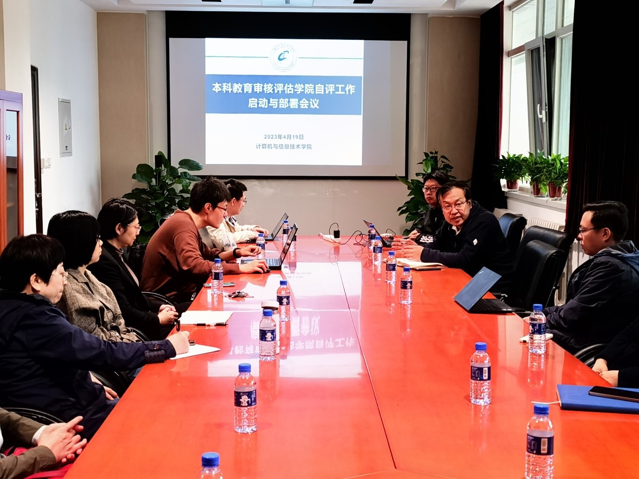 2023年4月19日,计算机学院在九教北111会议室召开了本科教育审核评估学院自评工作推进与部署会议,党委书记贾卓生、副院长熊轲、计算机类责任教授王志海、各专业责任教授及自评工作组相关老师参加了会议。