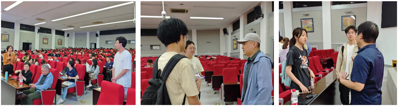 最后,宣讲会设置了答疑环节,同学们在现场提出了有关政策执行细节、专业前景等方面的问题,熊轲及各位专业负责老师们均进行了耐心回复,为同学们的疑惑提供了清晰的解答和指导。会后,老师们还与部分留下来的同学进行了一对一的交流,针对个别学生们感兴趣的问题进行了更加深入的沟通反馈。