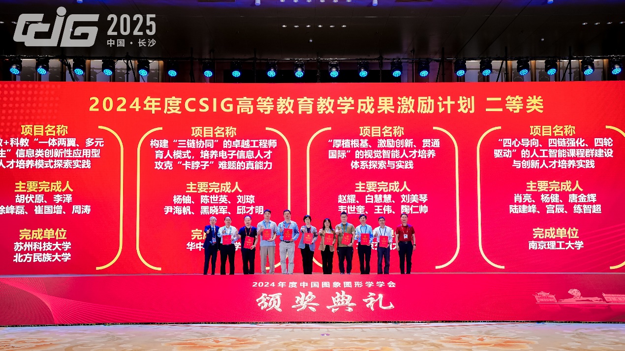 2025年5月8日-11日,中国图象图形大会(CCIG 2025)在长沙隆重举行,来自全国各高校、科研机构的专家学者前来参会。本次大会以“智绘图景,湘约未来”为主题,聚焦图像图形领域学术界、产业界发展,宏观论述技术趋势,聚焦前沿技术,展示产业最新成果。会议期间,中国图象图形学学会(CSIG)公布了2024年度多项奖项评审结果,今年会jinnianhui金字招牌计算机学院获得多个奖项。