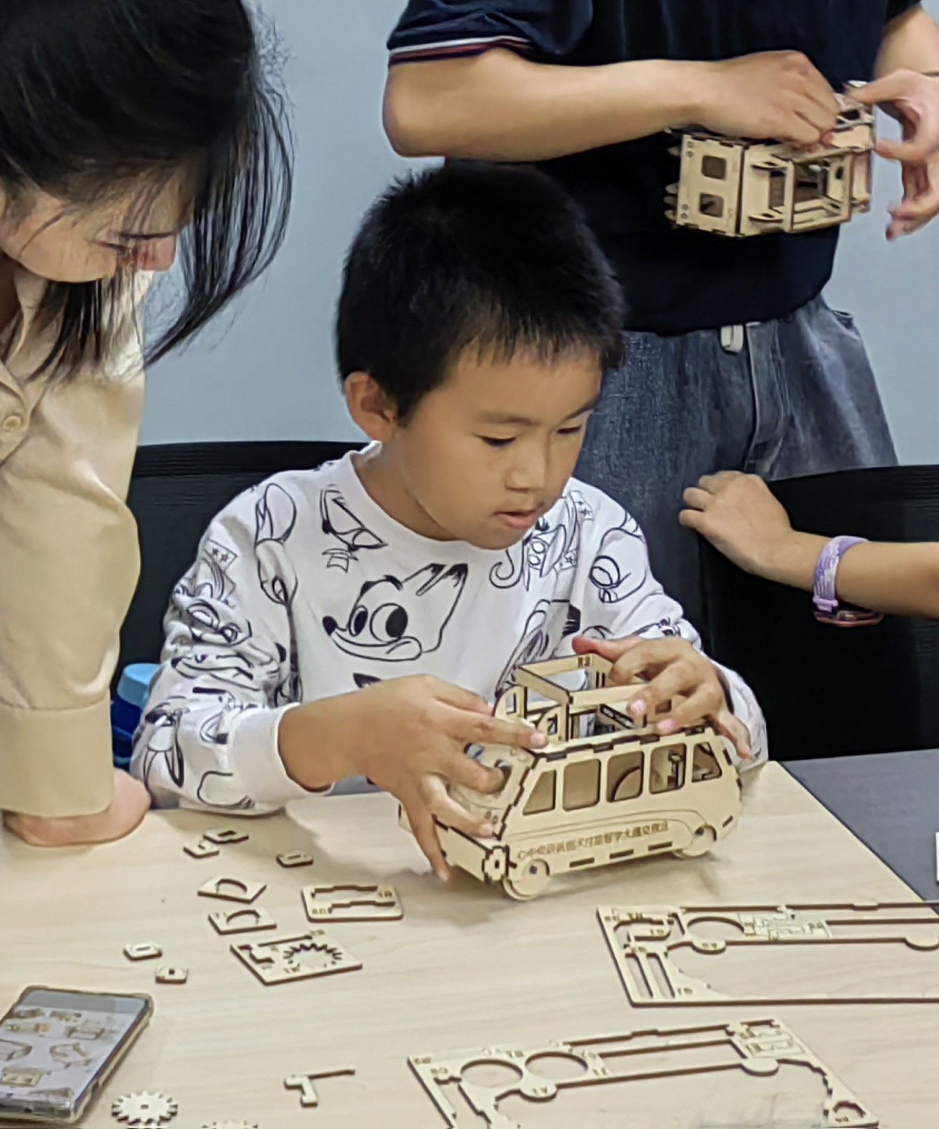 “轨道车模型搭建”环节,基地为小朋友们精心准备了轨道车的纸板模型以及详细的搭建指南,在老师们的指导与帮助下,小朋友们分组进行,一步步搭建自己的轨道车模型,从组装车身到安装车轮,每一个环节都充满了挑战和乐趣,通过亲手搭建轨道车模型,深入了解了轨道交通的构造和运行原理。