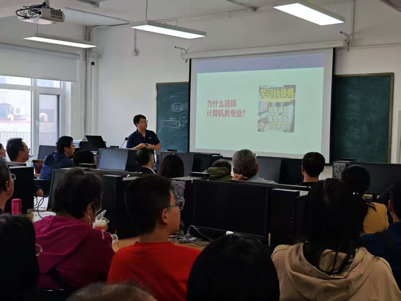 本次科普活动恰逢今年会高招咨询会,计算机学院副院长熊轲教授为广大考生家长做了详尽的招生专业宣讲,各专业责任教授孙永奇、贾彩燕、刘真,以及郭盛楠、马晓乐、樊崇艺等老师们在学院展台前为考试家长咨询。在实验中心,应学生和家长要求,赵守强老师以“AI时代的人才培养”为主线,介绍了在人工智能、大数据、智慧交通等领域学院为大学生提供的丰富多彩的科技项目。科普基地周围老师表示:“我们始终致力于将高校科研和优质教学资源转化为科普动能,让更多孩子感受到科技的温度与力量。” 一位高一学生满怀憧憬地说道:“原来计算机学院有这么多前沿实验室,我以后也想参与高铁智能巡检这样的项目!”
