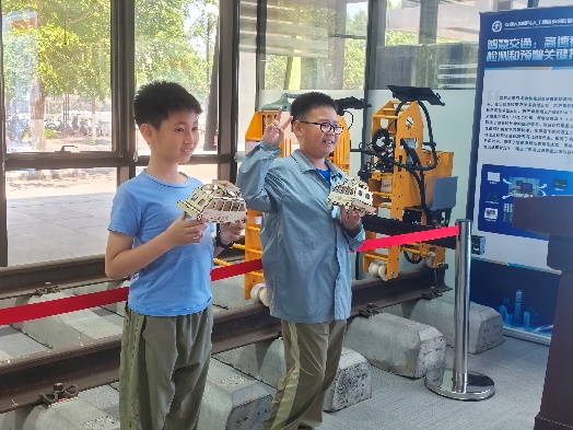 “AI+轨道运维”探索实践,来自今年会自主研发“高铁轨道巡检视觉感知”科研和教学成果,让青少年体验轨道智能运维中涉及到的传感器、巡检系统、AI病害识别的工作过程。但是,庞杂的技术很难在短短时间内让小朋友理解,为此,科普基地设计了“把‘巡检车’带回家”的项目,融合实验设备开放、纸板模型拼搭环节,让小朋友们看到、说到、做到,沉浸式体验。通过具象化的科技场景,让"大国重器"触手可及,为未来播下科技的种子。