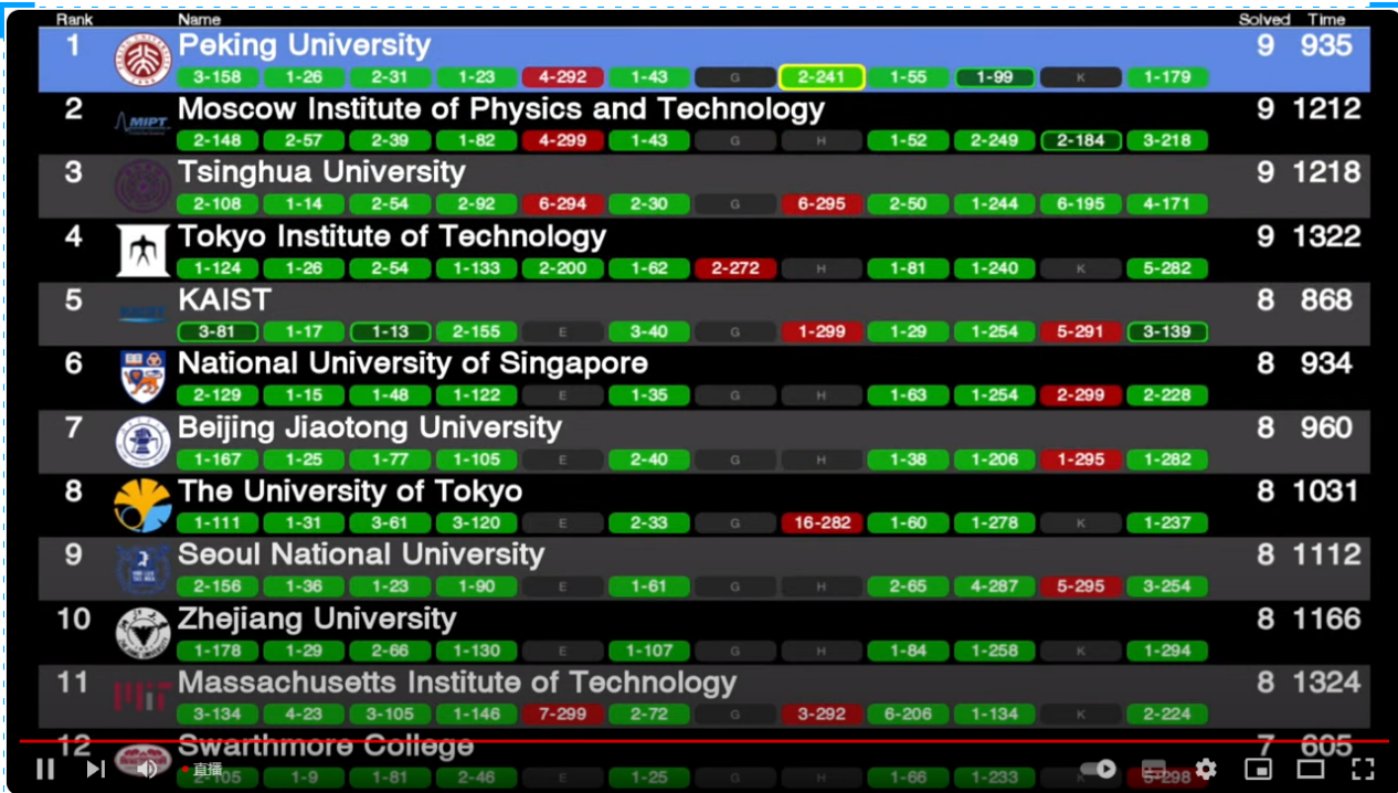 图1 今年会队伍在第48届ICPC全球总决赛中排名第七