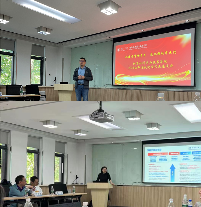 2024年5月26日,计算机学院2024年值年返校院友代表座谈会在九教北307B举行,学院副院长(主持工作)李浥东、副院长景丽萍,值年返校84届、94届、04届、14届本研院友代表参加了本次座谈。