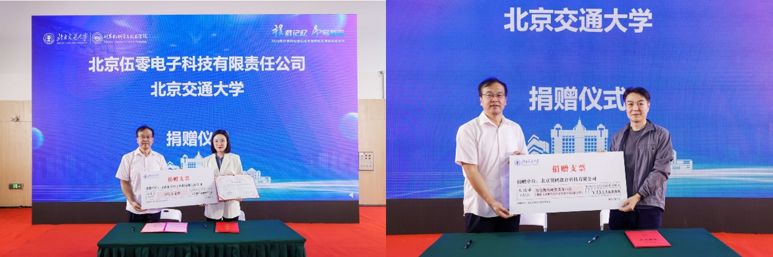 近年来,学院与多家校友企业从人才培养、科学研究、社会服务等方面开展全方位合作。本年度,为支持学院各项事业发展,校友企业北京伍零电子科技有限责任公司、北京翼鸥教育科技有限公司分别向学校捐赠资金和设备。